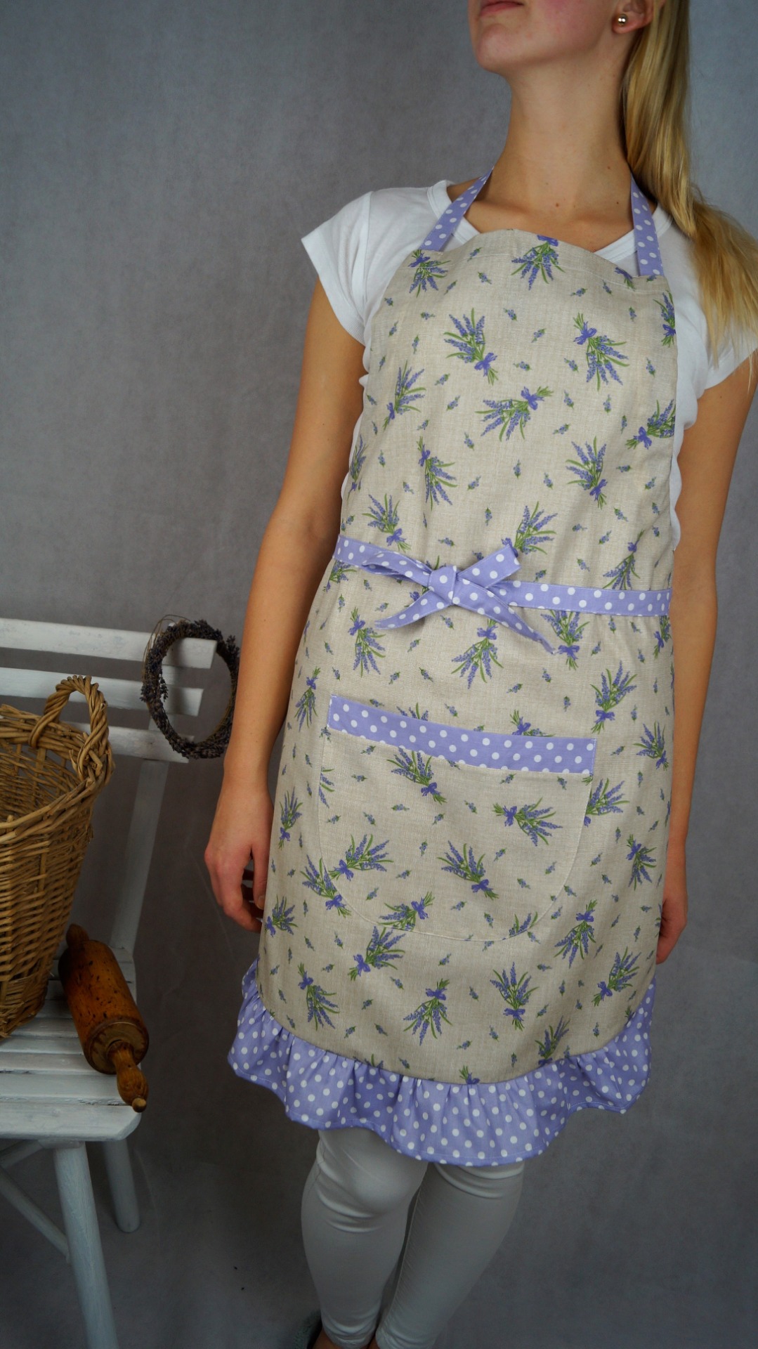 Možnost vázání v zadu i předu.Pásek vede průramky a dá se tedy libovolně nastavit pro vhodnou šířku a délku. Kapsa na předním díle. Poutko na zavěšení. Doporučené praní při 40 stup. Velikost UNI.